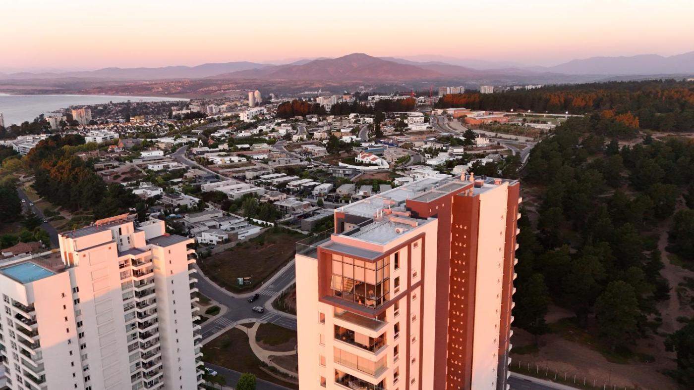 Family apartment in Concón near dunes and beach, que tiene piscina al aire libre, centro de fitness y jardín, dispone de alojamiento en Concón con wifi gratis y vistas a la ciudad. Este apartamento ofrece salón de uso común, además de terraza.